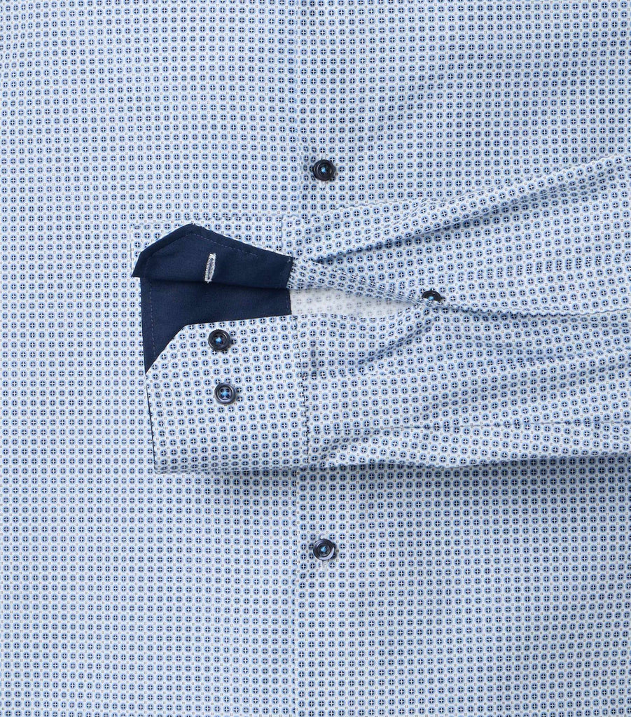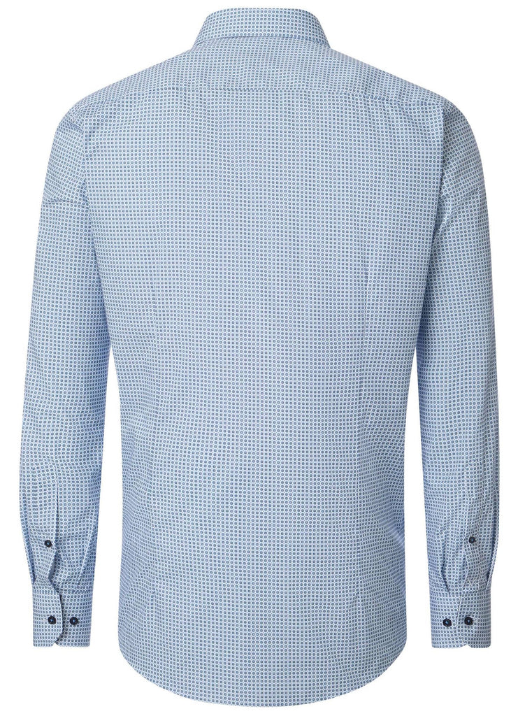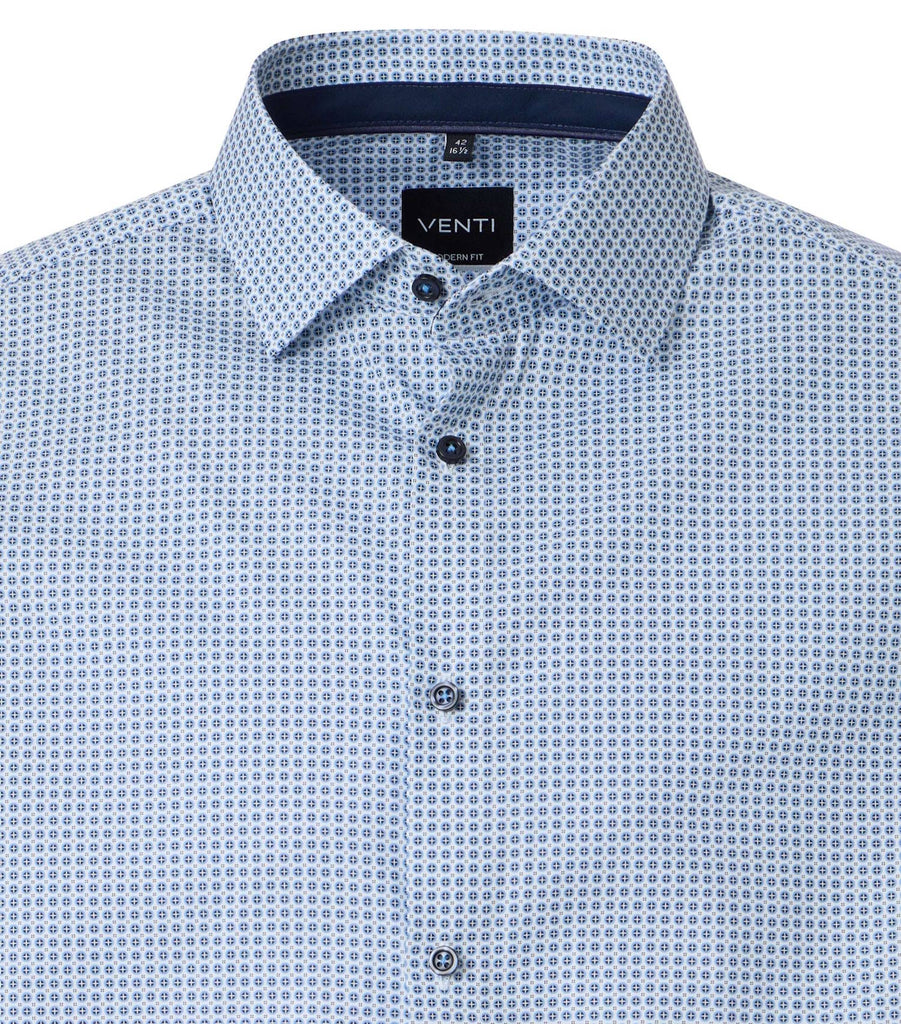 Venti Heren Overhemd Blauw Print met Navy Contrast Modern Fit ML7