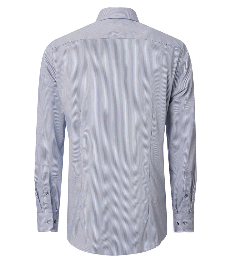 VT.226111002.102-39Prachtig blauw gestreept overhemd met extra lange mouwen (mouwlengte 7) uit de lente/zomer collectie 2026 van Venti. Dit overhemd is geschikt voor zowel business als casual gelegenheden. De overhemden van Venti zijn degelijk en mooi afgewerkt.