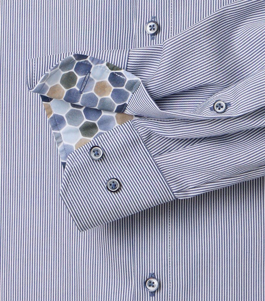Venti Heren Overhemd Blauw Streep Contrast Modern Fit Button Down ML7