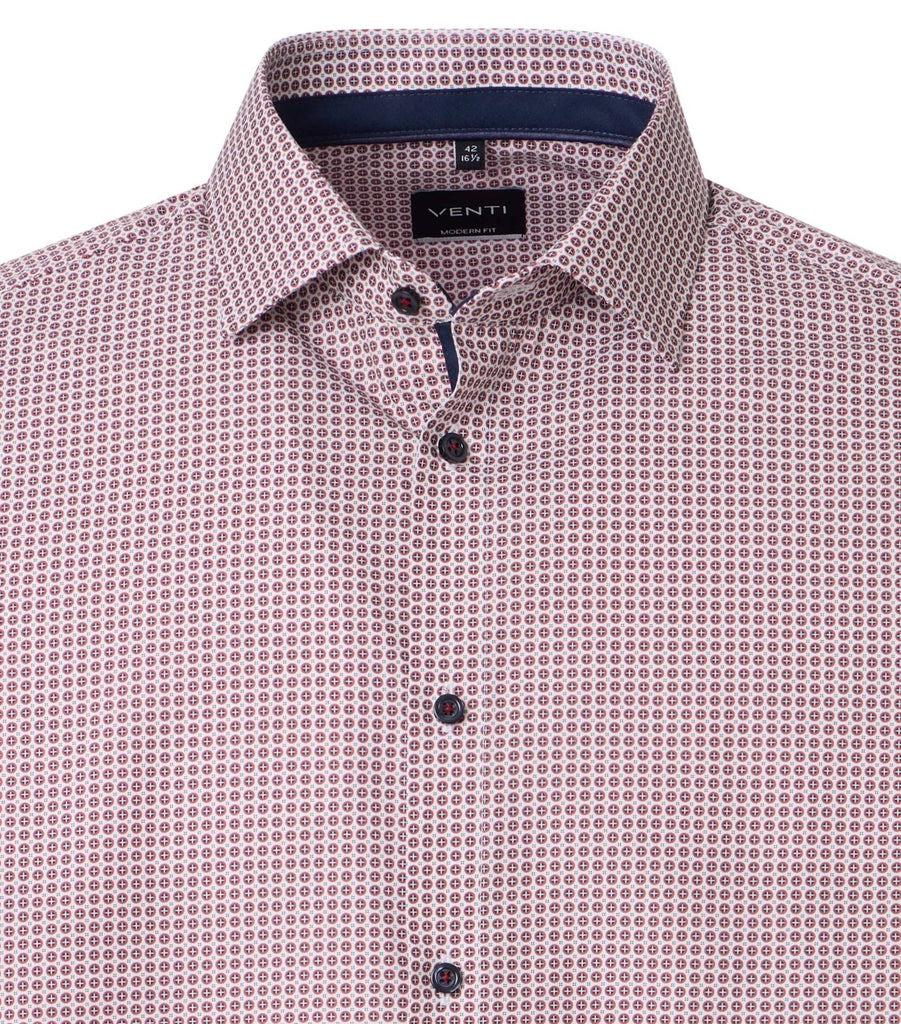 Venti Heren Overhemd Rood Print met Navy Contrast Modern Fit ML7