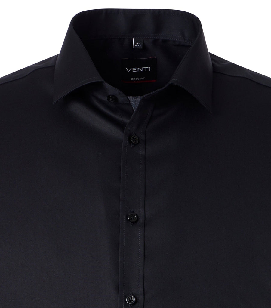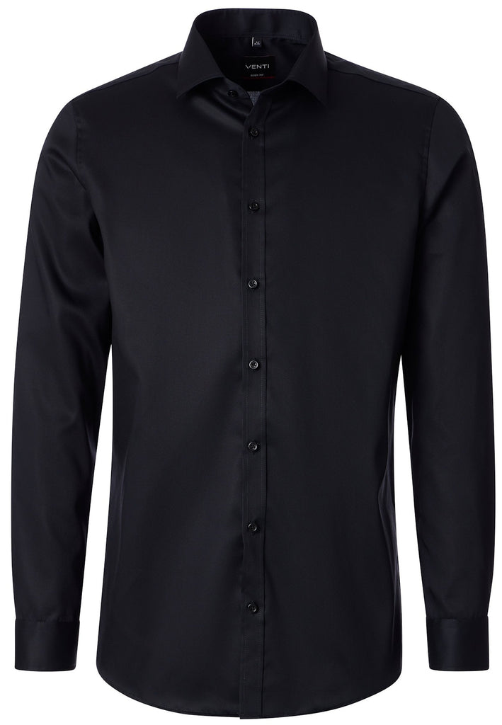 Venti Heren Overhemd Zwart Twill Body Fit ML7